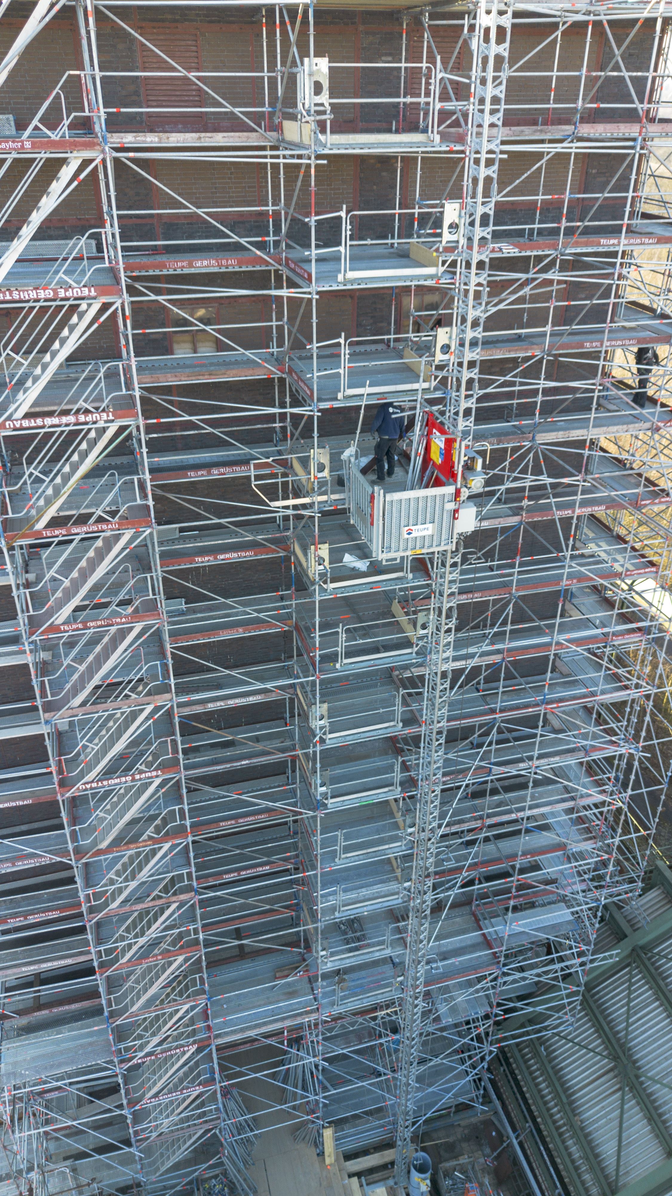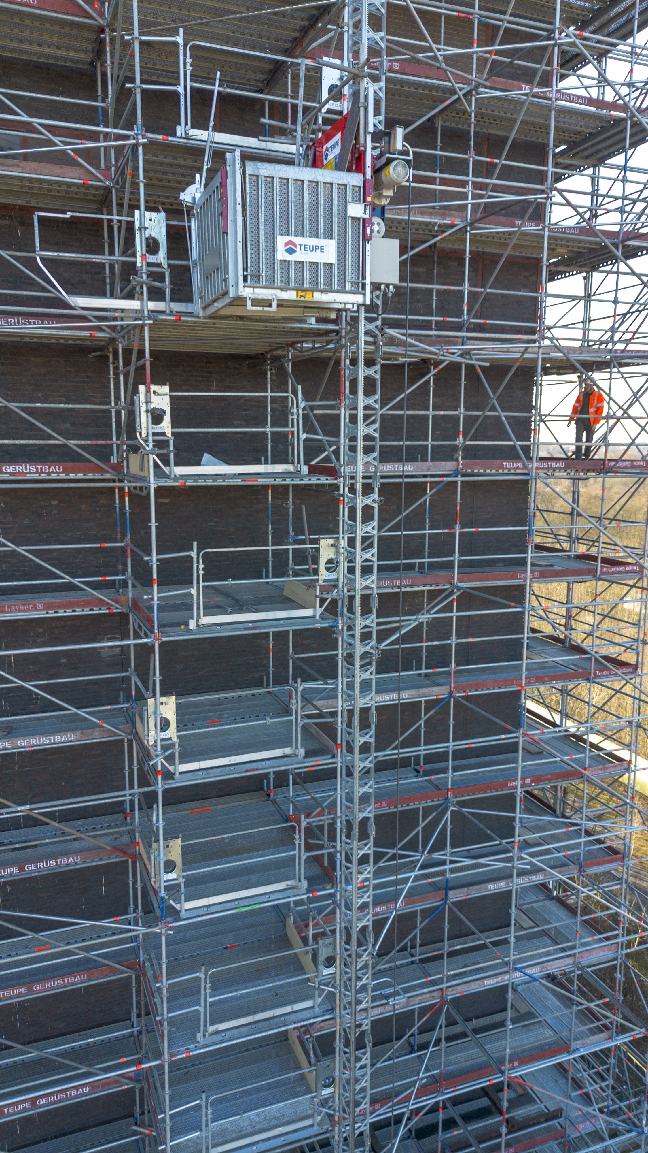 Mit einer Tragfähigkeit von bis zu 800 kg im Materialbetrieb und der Zulassung für den Personentransport eignet sich diese Variante ideal für enge Platzverhältnisse oder besondere logistische Anforderungen. Die robuste Bauweise sorgt auch bei anspruchsvollen Einsätzen für einen sicheren und zuverlässigen Betrieb.